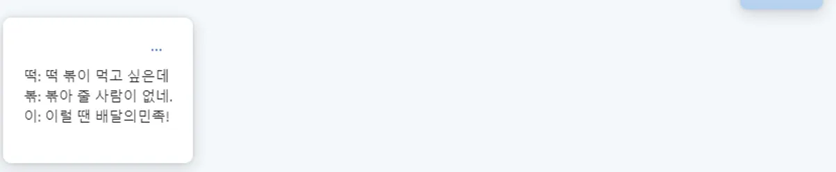 성격을 정의하고 나면 AI가 한 번에 원하는 수준의 농담 메시지를 생성해주면 참 좋을텐데, 아쉽게도 Chat GPT는 유머가 부족한 데다가 한국어가 모국어가 아닌 아이였습니다. 이런 아이에게는 나머지 학습이 필요하기 마련인데요. 짧은 예시문장들을 제공하여 AI가 예시 문장을 참고하여 새로운 메시지를 만들 수 있도록 하는 작업을 ‘퓨샷러닝'(Few-shot Learning)이라고 합니다.